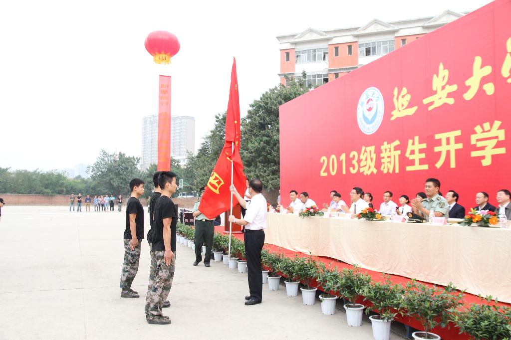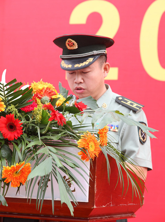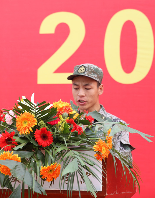 封学军副经理宣读了《关于成立2013级员工军训团建制的决定》和《关于建立军训团临时党支部的决定》,马经理向军训团授旗,军训团政委陈瑶宣读军训团纪律条例。军训团团长张广伟中校表示,一定会贯彻训练条例,严格遵守公司的规定,爱护员工,科学施训,高质量完成军训任务。教官代表符江和参训员工代表张筱分别发言。