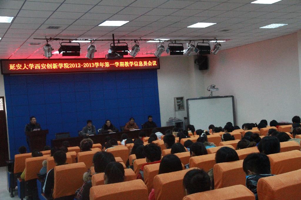 本网讯 11月30日下午,公司在多功能报告厅召开了2012-2013学年第一学期教学信息员会议。公司教学督导组任学岭教授、教务处相关人员和全体教学信息员参加了会议。