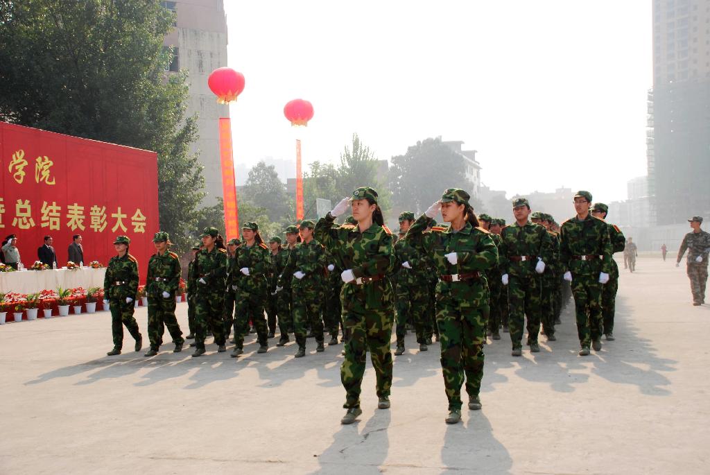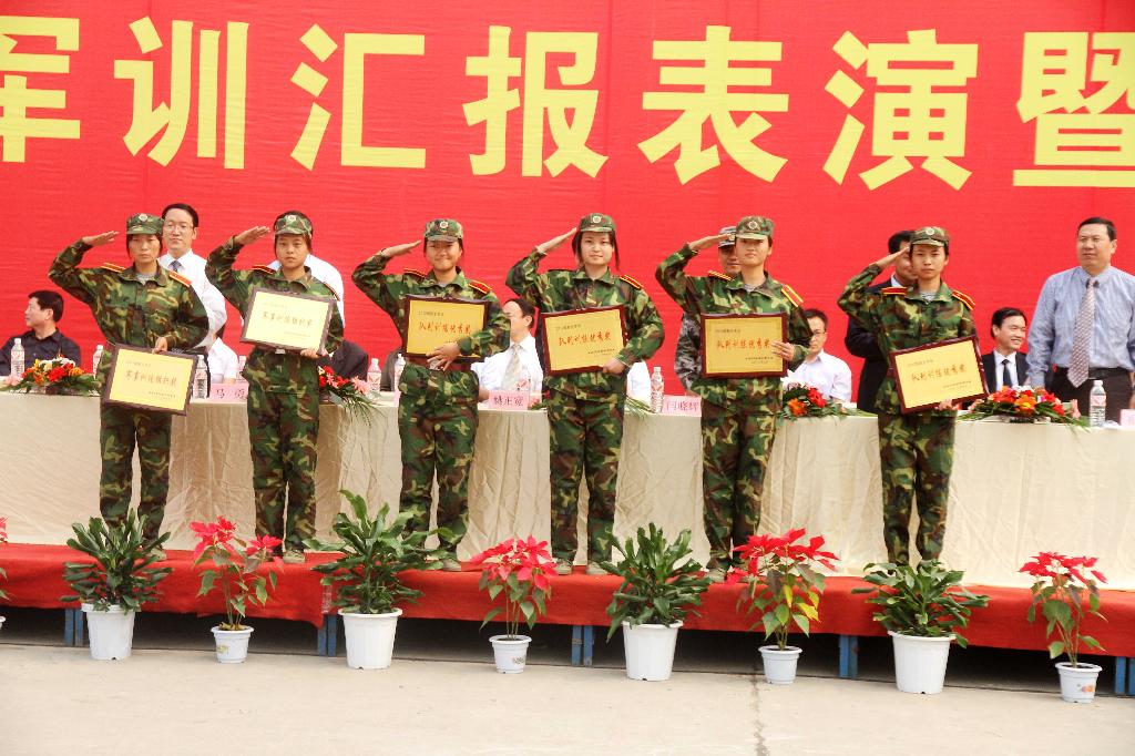 汇报表演结束后,军训团政委、员工处处长陈瑶宣读了军训团的表彰决定。主席台就座领导向先进集体和先进个人颁发了奖牌和证书。员工代表理工系汽车服务1201班谭凯中和军训团团长闫晓辉少校先后发言。