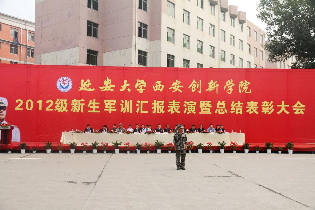 本网讯 今天上午,公司2012级新生军训汇报表演暨总结表彰大会在操场举行。英国正版365官方网站党委副书记、董事长崔智林,董事长办公室主任姚正宽应邀出席大会。公司院级领导,各系各职能部门主要负责人和军训团全体官兵参加了大会。经理助理、教务处处长马保国主持大会。