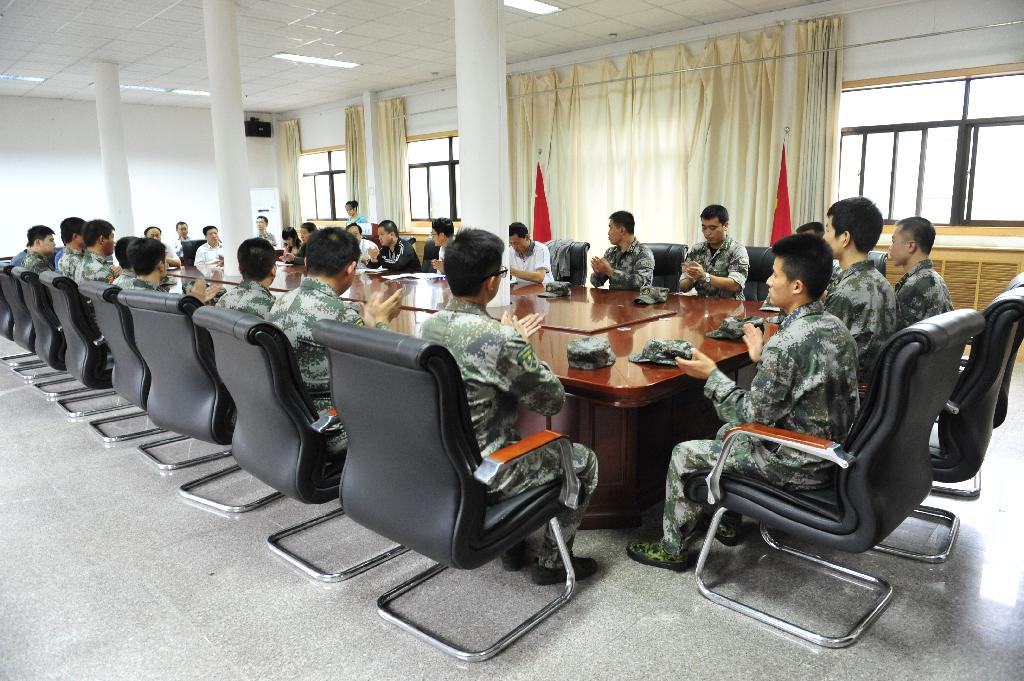 本网讯 9月10日下午,公司在司教苑会议室召开军训团教官与相关部门人员见面会,公司党委常务副书记、副经理封学军、员工处处长陈瑶、各系主管员工工作的系主任与参加军训的辅导员以及中国人民解放军边防公司全体教官参加了此次会议。会议由学工部部长、员工处处长陈瑶主持。