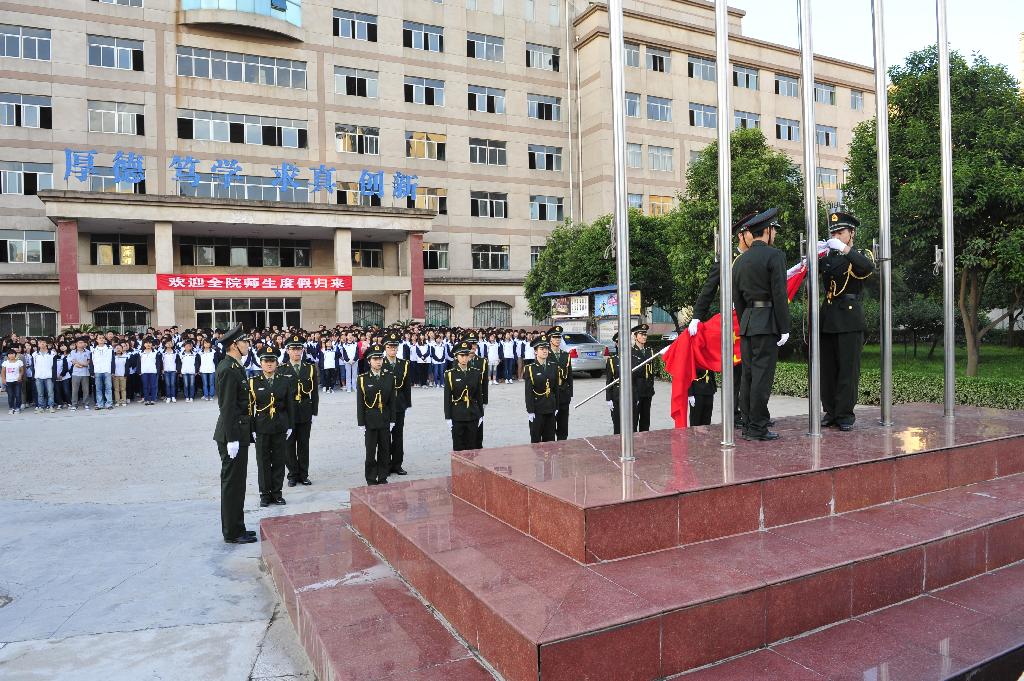 一直以来,公司坚持在每周一早上举行隆重的升国旗仪式,以此加强对师生的爱国主义教育。国旗护卫队在员工处的指导下坚持队列训练与拓展训练,以严格的管理和过硬的作风圆满完成了每周一和重大活动时的升国旗任务,已成为公司一道亮丽的风景线。