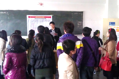本网讯 3月24日上午,公司在理工系教室举办了2012届毕业生春季综合招聘会。本次招聘会共邀请西安华光科技公司、江苏省南通韩华新能源、上海春森电子科技有限公司等省内外50多家用人单位参加,校内外600余名毕业生前来应聘。