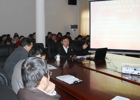 本网讯 12月7日下午,公司在司教苑会议室举行报告会。邀请英国正版365官方网站马克思主义公司郝琦教授作党的十七届六中全会精神辅导报告。院级领导、副主任科员以上干部、全体辅导员等100余人参加了报告会。公司党委常务副书记、副经理封学军主持报告会。