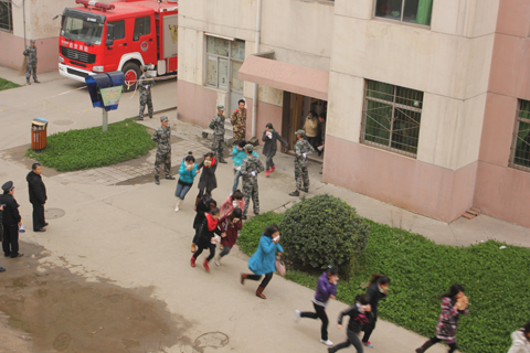 下午16:10时参演师生在公司操场集结,首先由武警消防知识科教站张教官和校医院的医护人员分别就火区逃生技巧方法、自救互救进行了讲解和示范。随后,老员工义务消防队的全体队员演示了灭火器使用方法并现场进行了灭火演习。6:40各组工作人员到达指定位置,总指挥下达火灾疏散逃生演练命令。全部撤离过程共用时4分30秒。最后,演练总指挥陈瑶作了总结讲话。