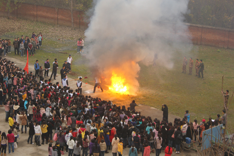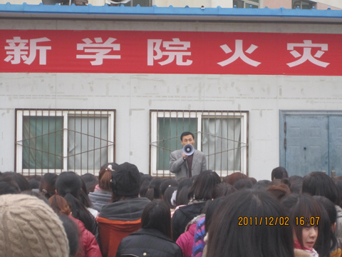 本网讯 为了更好地在公司师生中普及消防安全知识,掌握火灾疏散逃生技巧和方法,提高自我防护意识, 12月2日下午,由员工处主办,后勤处协办的公司首次火灾疏散逃生演练在公司操场举行。经管系4号员工公寓606名同学参加本次演练,各系主管员工工作的主任、全体辅导员、老员工义务消防队到现场观摩演练活动。演练活动由员工处处长陈瑶担任总指挥。