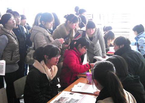 本网讯 11月20日,公司毕业生冬季第二场校园综合招聘会在2号教学楼举行。三秦都市报、广东美的制冷设备有限公司、西安外贸科技公司等五十余家企业前来选拔人才,500余名应届毕业生参加了招聘会。