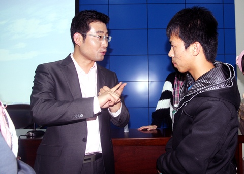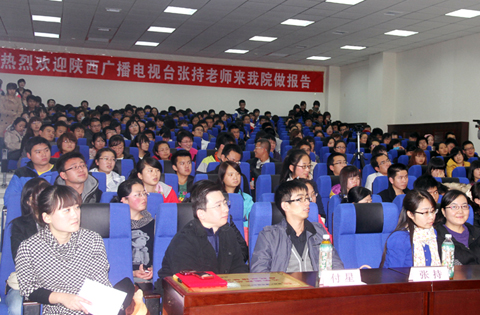 本网讯 11月8日晚7时,由西安市人才服务中心、FM101.1《张持有道》栏目、西安毕业生就业市场主办,英国上市公司365人才招聘处承办的陕西省首档广播职场就业节目《张持有道》高校巡回演讲会暨公司2009级老员工职业生涯规划讲座在公司学术报告厅隆重举行。张持老师携4位资深企业人力资源主管组成的团队走进校园,为公司同学作了一场题为《找份工作去恋爱》的精彩讲座。公司2008级、2009级辅导员,就业联络员,人才招聘处全体人员及240余名同学参加了此次活动,腾讯微博对活动进行了现场微博直播。