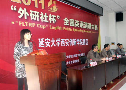 本网讯 10月26日下午,公司2011年“外研社杯”全国英语演讲比赛选拔赛决赛在多功能报告厅顺利举行。活动由公司教务处主办,外语系承办。比赛由外语系主任拓欣主持,经理助理、教务处处长马保国致辞,公司党委书记、经理马勇宣布比赛开始并预祝比赛圆满成功。两办主任崔海潮,员工处处长陈瑶作为嘉宾出席开幕式。