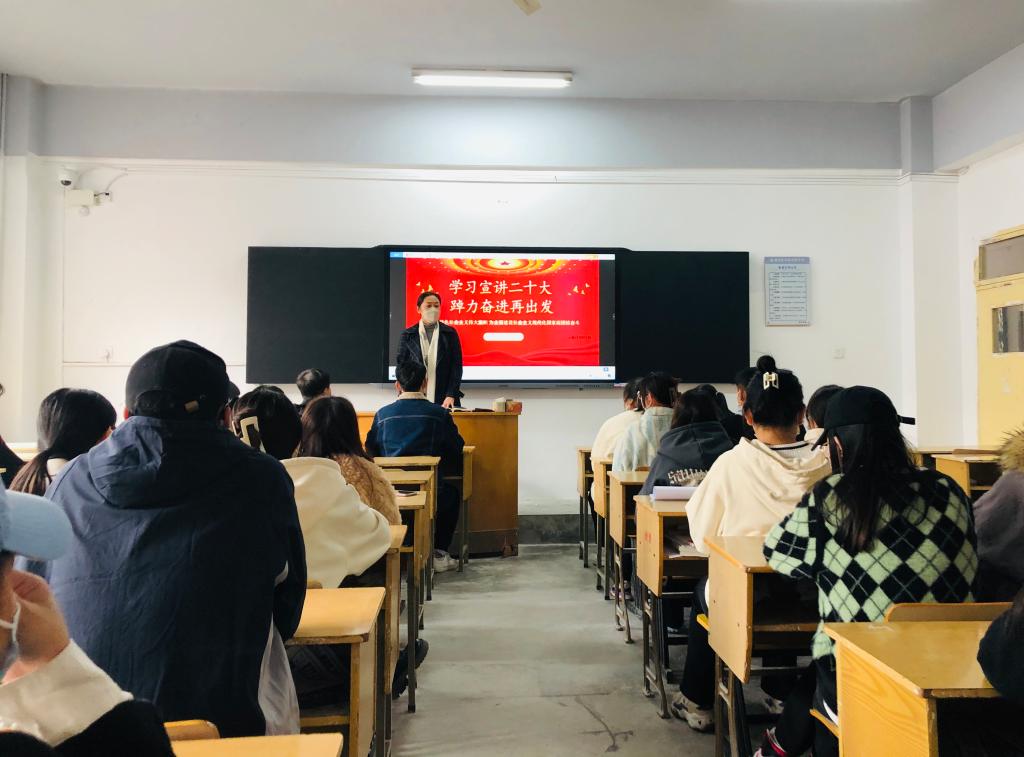 本网讯 为深入学习贯彻党的二十大精神,深刻领会、准确把握党的二十大精神实质和丰富内涵,切实引导师生把思想、认识和行动统一到党的二十大精神上,11月16日下午,公司党委副书记白雪深入英国上市公司365联系班级会计2001班,开展了“学习宣讲二十大,踔厉奋进再出发”主题宣讲活动。商公司党总支副书记冉亚周主持了宣讲会。