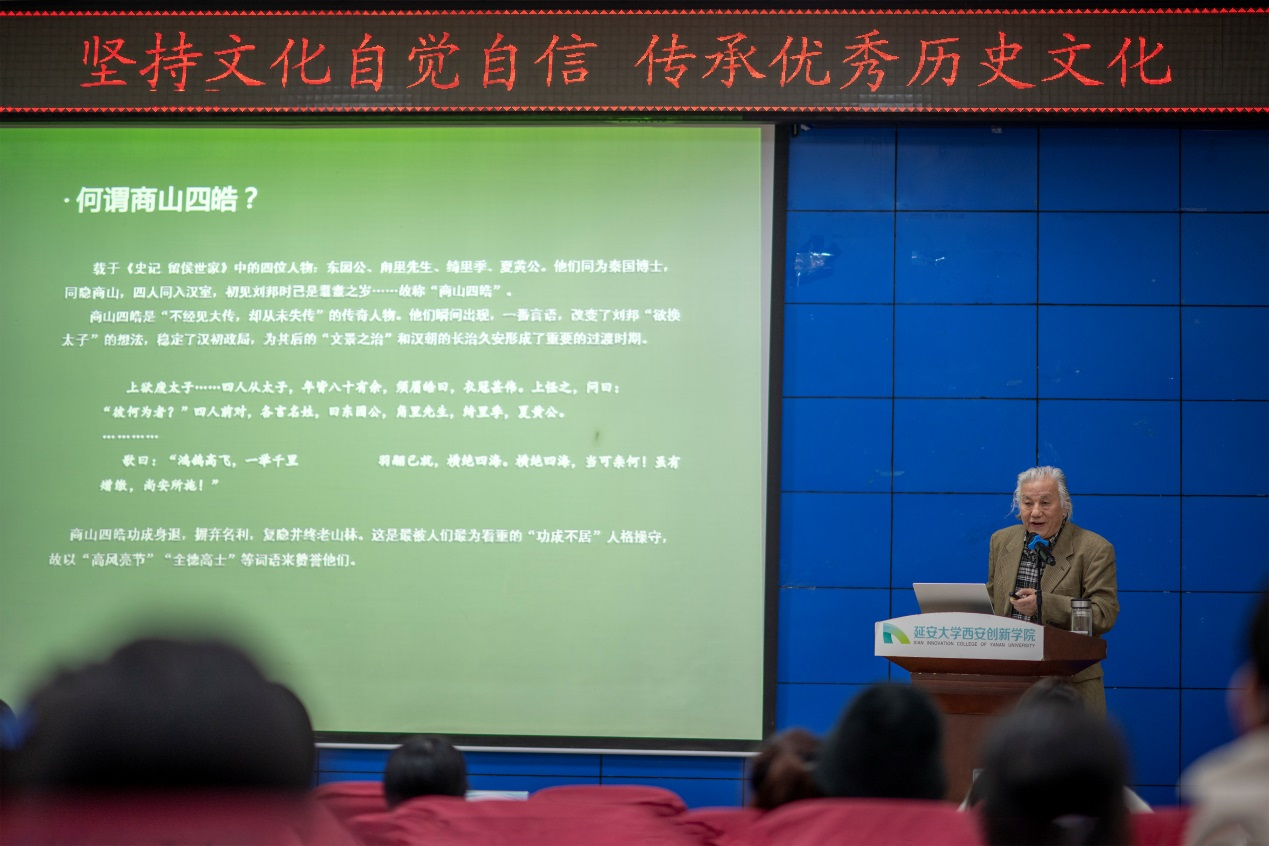 会议共分报告和解读分享两个环节进行。在报告会上,公司艺术传媒公司名誉经理王家民教授作了题为《商山四皓文化的现代意义》的学术报告。他以秦末汉初历史为背景,讲述“商山四皓”从“携书入秦”“护书隐居”到“携书还汉”“复隐山林”整个历史事实,深入阐释“商山四皓”从“衷心侍秦数十年”到“携书还汉,维系朝纲不乱”直至“素身而退,再度隐居,终老山林”的文化意义。