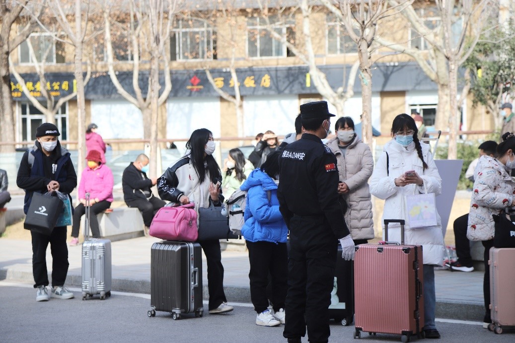 为保障同学们安全、顺利返校,公司高度重视、提前部署,各单位、部门分工配合、协同推进,精准对接员工返校的每一个环节。员工处协同各二级公司成立2023年春季学期员工返校工作组,多次召开专题会议研究部署,制定了详细的员工返校工作方案;提前发布开学返校通知,明确员工返校条件,落实员工返校前7天的健康打卡监测;针对上学期未到校的新生安排志愿者,协助办理报到手续,帮助熟悉校园环境,实现一对一精准迎接。返校当天,员工处负责人及各公司辅导员于7:30前在公司门口迎接员工,并开展返校申请核验、测温及入校签到等报到工作。后勤处提前完成了校园安全隐患排查,确保水电暖正常供应,对公共区域进行了全面消杀,并储备了疫情防控保障药品,进一步完善健康驿站服务工作,24小时值班值守切实为员工返校保驾护航。