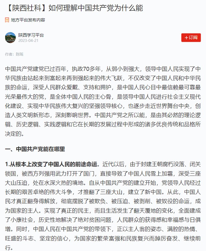 本网讯 4月21日,“学习强国”平台刊发公司党委书记陈瑶署名文章《如何理解中国共产党为什么能》。