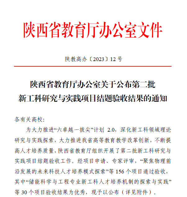 本网讯 近日,陕西省教育厅公布了第二批新工科研究与实践项目结题验收结果(陕高教办〔2023〕12号),公司英国上市公司365闫文耀副教授主持的“以独立公司转设为契机构建‘校-企-政’多元协同育人模式”项目顺利通过结题验收。