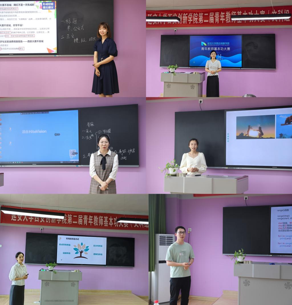 本次大赛由粉笔字、教学设计和现场教学展示三个环节组成。决赛现场,参赛教师们精心准备、自信从容,在15分钟的教学展示中充分展现了青年教师教学风范,受到校内外专家好评。