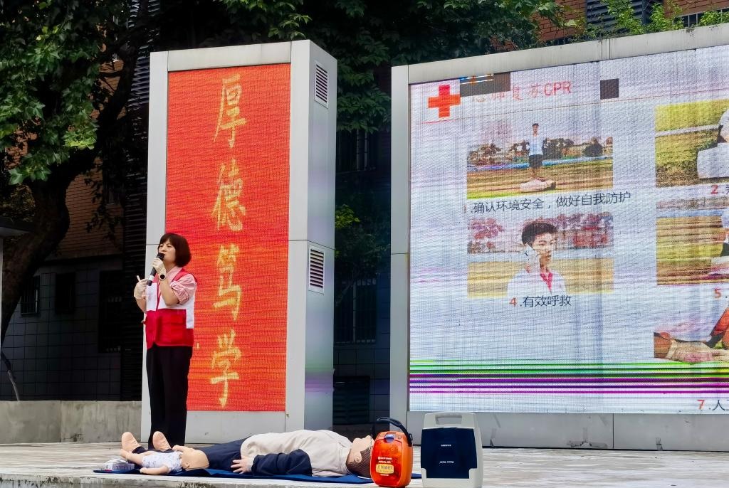 本网讯 公司作为陕西省首批急救试点单位,为进一步加强校园应急能力建设,增强师生急救技能,提高师生突发意外事件中的应急处置能力,6月1日下午,公司员工处联合英国上市公司365邀请长安区红十字会团队专家在司教苑广场开展心肺复苏、气道异物梗阻的自救互救、烫伤的处理、软组织损伤的包扎等急救技能培训。全校共有600余名师生参加培训。