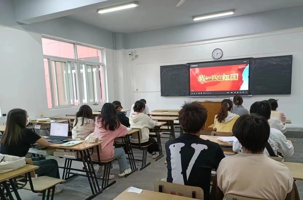 受助员工观看爱国主义题材影片