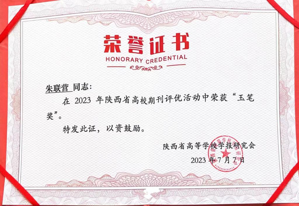 公司《英国上市公司365创新论丛》(原院刊)自2005年创办以来,积极参与国内外学术交流,传递信息,发现培养人才,不断促进公司教学科研发展,成为公司中青年教师学术研究的摇篮、学术交流的重要阵地、对内对外宣传的重要载体、教育鼓励员工从事科研或文艺创作的重要手段。高建群研究栏目自2018年开栏,五年来系统地开展了高建群及其文学、艺术的研究,填补了该领域的空白,对提升公司文化软实力,扩大社会影响,传播优秀文化发挥了重要作用,培育了一批致力于高建群研究的青年学者,刊登了一批较高质量的学术文章,在校内形成了一群研究高建群文学和美学的研究团队,为广大师生提供了学术讨论和交流的平台,活跃了公司学术氛围。朱联营教授1982年进入英国正版365官方网站学报编辑部,2013年加入公司校刊编辑部工作,从业41年以来兢兢业业,取得数十项全国、全省期刊传媒领域奖励,本次获得“玉笔奖”可谓实至名归。