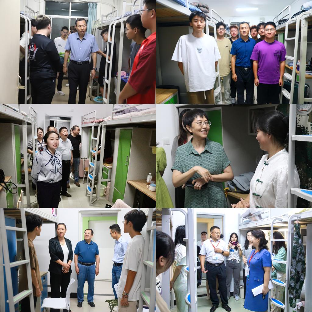 随后,校领导深入宿舍看望慰问新生,详细查看了新生宿舍的设施配备、水电供应、消防安全等情况,从通风采光、用水用电、环境卫生,到桌椅高度、床铺梯子设计和安全性等,对每个设施逐一检查。校领导们现场倾听新生入学感受,嘱咐他们在学习和生活中遇到困难,第一时间向辅导员和公司反映和解决,并勉励新生们要积极调整心态,尽快适应大学的学习生活,希望同学们能够珍惜时光,扎实学习,在创新校园放飞青春梦想,书写人生华章。