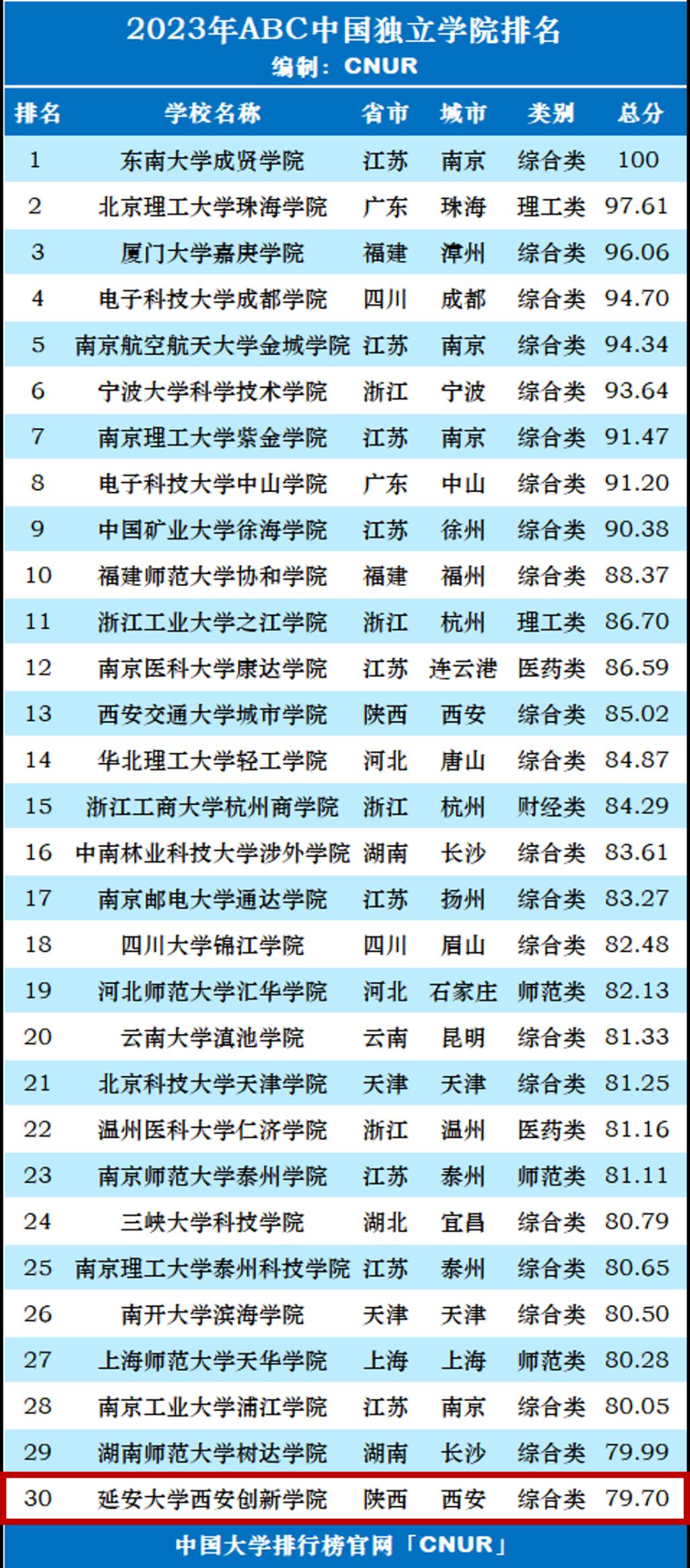 本网讯 近期,2023年ABC中国独立公司排名于中国大学排行榜官网(CNUR)正式首发,共有142所院校上榜!公司以79.7分位列全国独立公司排名第30名。