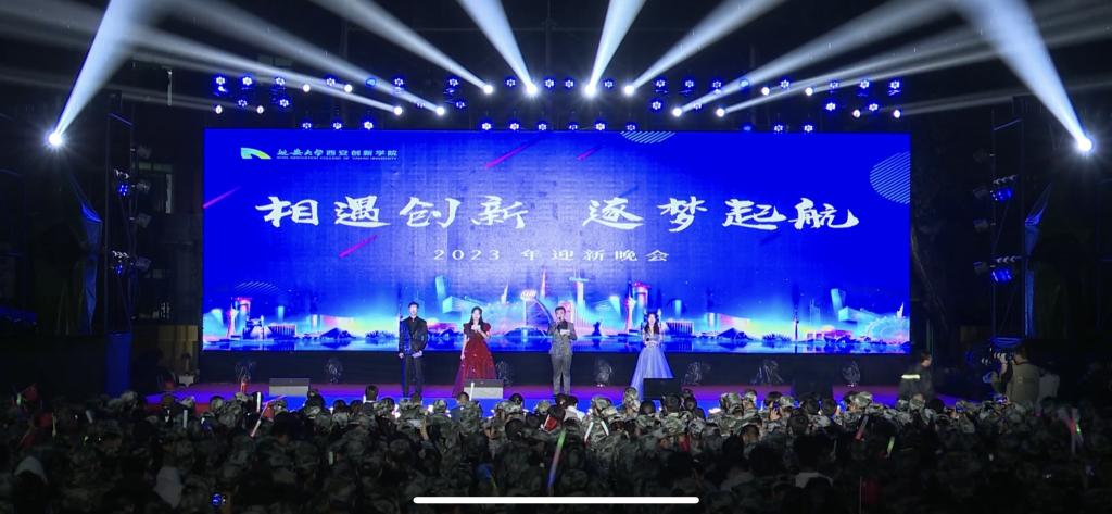 本网讯 为热烈欢迎2023级新生,展现公司师生良好精神风貌,9月20日19时30分,公司在田径运动场隆重举办了以“相遇创新 逐梦起航”为主题的迎新晚会,师生欢聚一堂,气氛火爆,青春与热情撞了满怀。董事长崔海潮、副董事长拓欣、党委副书记白雪,董事长助理侯延丽、桑伍福出席晚会。晚会通过丝路直播网同步直播,万余名师生和家长线上线下同步观看,共同见证新同学们即将开启的人生新征程。