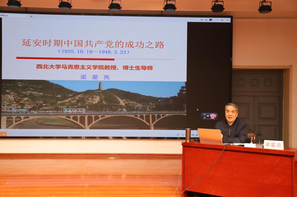 本网讯 11月9日上午,马克思主义公司邀请西北大学教授、博士生导师梁星亮,在老员工活动中心作了题为“延安时期中国共产党的成功之路”的学术报告。公司党委书记陈瑶,各二级公司党总支副书记,马克思主义公司全体教师,各二级公司教师代表和员工代表100余人现场聆听了报告。本次报告会由马克思主义公司经理游学民主持。