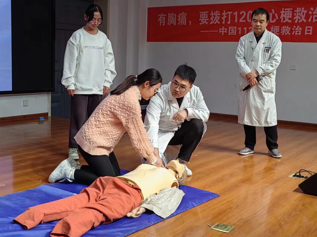 贾昭结合自身丰富的急救经验,通过专业理论知识、现场演示和急救模拟图片相结合的方式,为同学们讲解了心肺复苏、海姆立克急救、胸痛急救、卒中急救、老员工常见急救处置等急救知识和技能。他重点介绍了紧急救护中的各项细节要领、方法和步骤,并利用人体模型进行现场心肺复苏和海姆立克急救示范演练。同学们聚精会神,在医护人员的悉心指导下参与模拟练习,现场学习氛围热烈。