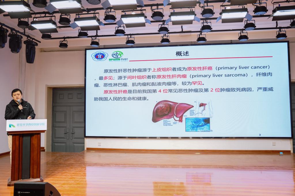 任松以 “肝癌治疗研究进展” 为主题,分享了个人及团队在肝癌治疗领域取得的最新研究成果,以及未来研究的发展方向涉及的肝癌发病机制、诊断技术、治疗方法、介入治疗、免疫治疗及因人而异的治疗策略等多个方面内容,深刻剖析了肝癌的复杂性和研究的重要性。在现场问答环节,师生们热切关心如何在日常生活中通过饮食达到对肝脏的保健,以及如何在早期预防此类疾病的发生,任松以诙谐幽默的回答赢得现场师生阵阵掌声。