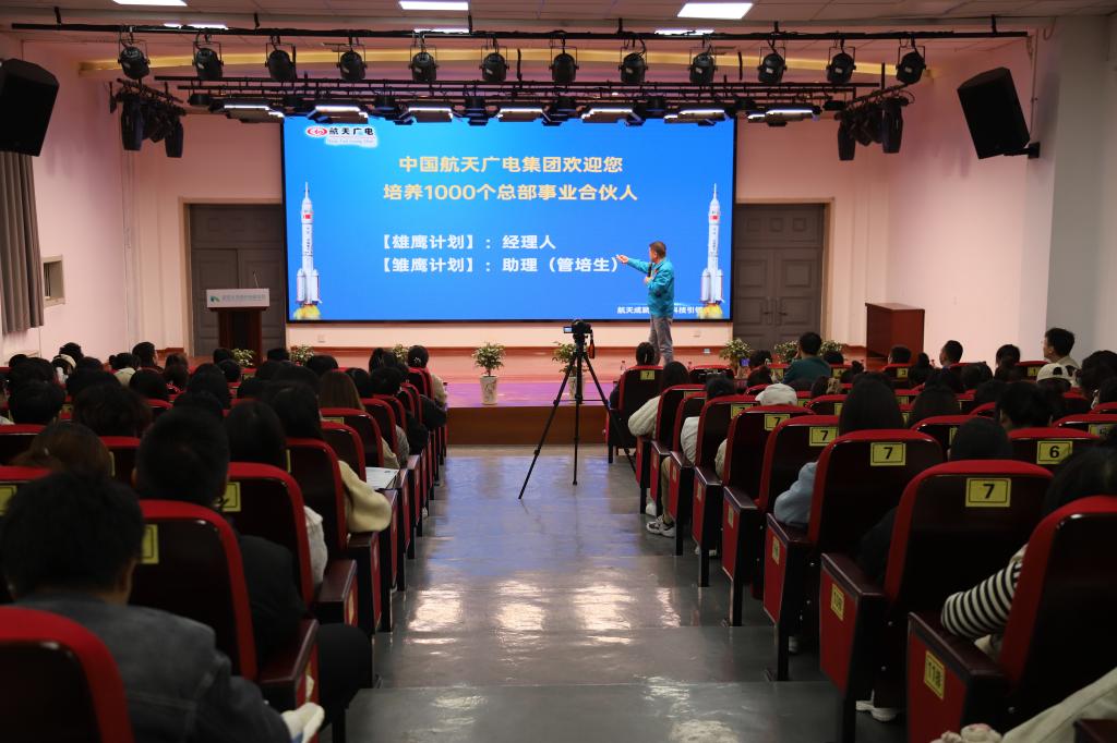 本网讯 11月23日下午,中国航天广电集团董事长邱晓健来公司选拔优秀毕业生,并在老员工活动中心作了《老员工职场成功之路》主题宣讲。公司党委副书记白雪、就业指导服务中心常务副主任高小阳、各二级公司党总支副书记、毕业班辅导员、毕业生代表160余人参加宣讲会。宣讲会由白雪主持。