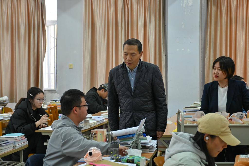 崔海潮代表公司表达了对考研员工的关心和祝福。他鼓励同学们,考研路上充满荆棘和坎坷,要有雄心壮志坚持跑完最后一段路,全力冲刺的同时要保持良好心态,注意劳逸结合。慰问现场,他亲切地问询员工的报考院校和专业,并提出指导意见,叮嘱员工要注意身体健康,有问题及时和老师沟通,从容应对考试。