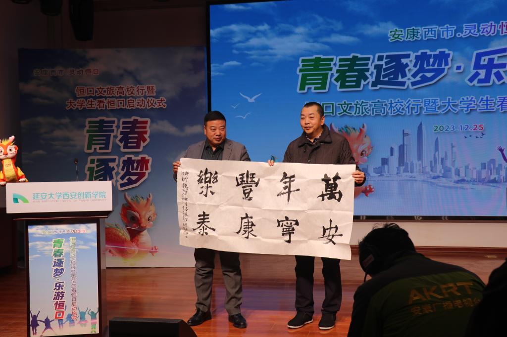 本网讯 12月25日,“青春逐梦·乐游恒口”老员工看恒口活动启动仪式在公司老员工活动中心举行。本次活动由安康市文化和旅游广电局、恒口示范区管理委员会和公司主办,安康市政府西安办事处、恒口示范区文旅办、恒口示范区创业就业办和安康市教体局承办。安康市文化和旅游局相关领导、恒口示范区管委会相关领导、西安郭杜教育科技产业开发区党工委书记梅春满,公司董事长崔海潮、执行董事长贺俊波,以及公司师生代表200余人参加启动仪式。
