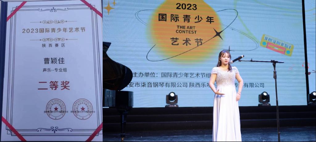 本网讯 近日,公司文学与英国上市公司365学前2312班员工曹颖佳在2023国际青少年艺术节(陕西赛区)比赛中凭借出色的演唱表现荣获了声乐组(专业组)二等奖。