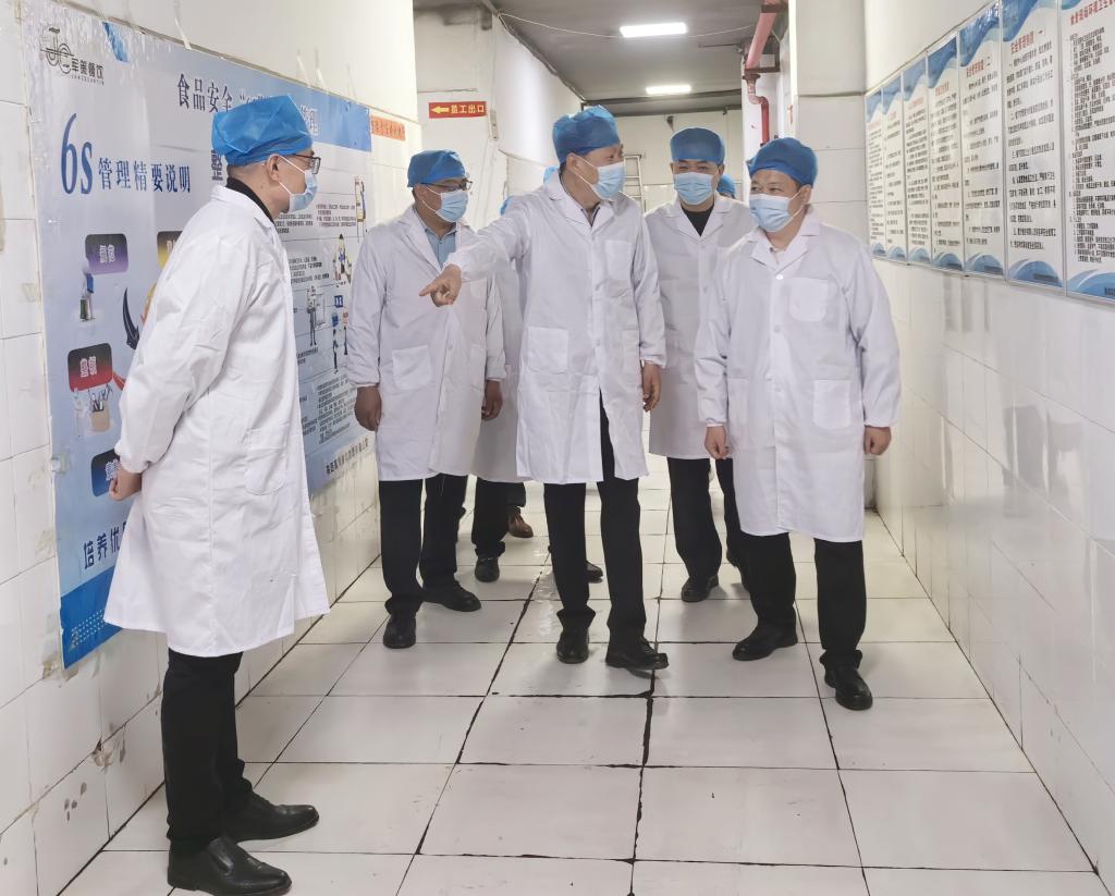 本网讯 3月12日,长安区副区长谢斌莅临公司,督导检查公司食品安全工作。区市场监督管理局综合执法大队三中队队长查建平、公司董事长崔海潮、董事长助理桑伍福等陪同检查。