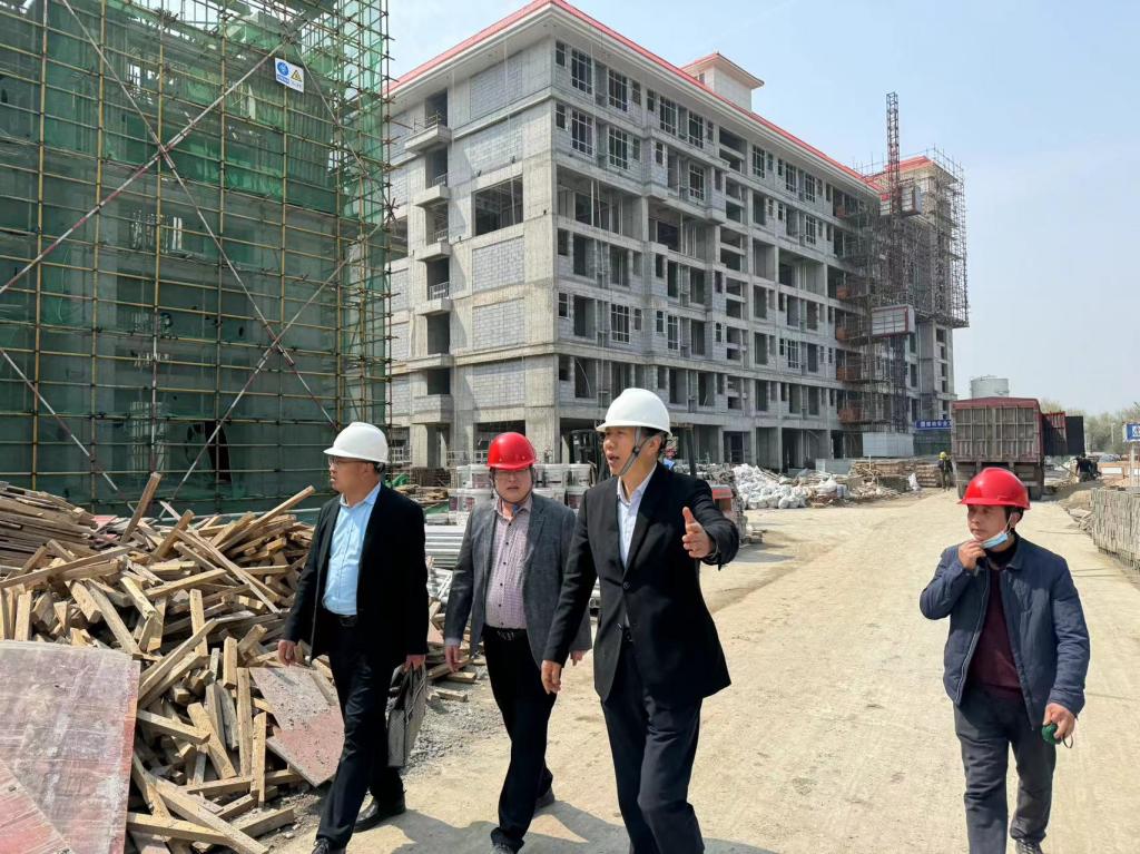 会后,崔海潮一行实地查看了新校区建设施工现场,听取了项目负责人对教学楼、宿舍楼、体育场等建筑施工进展的汇报,详细询问了项目部施工人数及后勤保障工作、生产安全措施、二期拆迁进度、施工工期及项目建设存在的困难等情况。