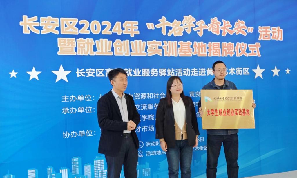 本网讯 3月28日,长安区2024年“千名学子看长安”活动暨就业创业实训基地揭牌仪式在黄良文化艺术街区举行。公司就业指导服务中心常务副主任高小阳应邀参加活动并为黄良艺术街区授牌。长安区人社局副局长张卫萍、人才交流服务中心副主任王宇,黄良街办乡村振兴办主任刘李良,西安邮电大学、西安外国语大学、西安明德公司就业负责人参加了本次活动。