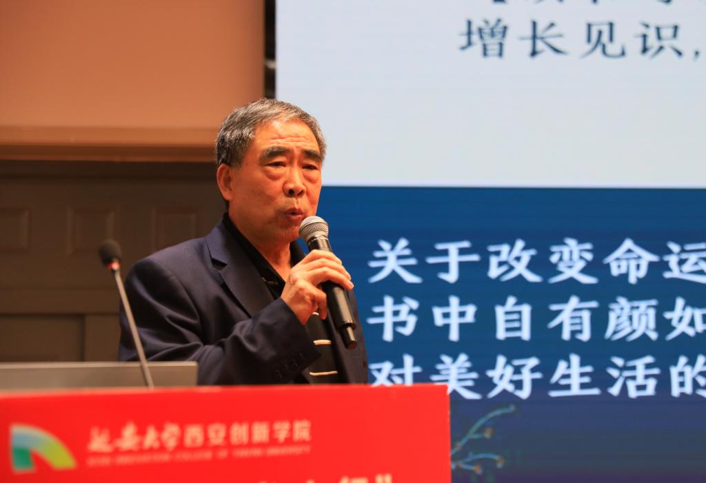 蔡静波教授作《浅谈我对读书的认知》的主题演讲。他从读书的作用、读书的选择、读书的方法三方面展开,让同学们充分认识到读书可以改变命运,开阔视野、增长见识,提高人的素养。他引用英国作家莎士比亚的“书籍是全世界的营养品,生活里没有书籍就好像没有阳光,智慧里没有书籍就好像鸟儿没有翅膀”,鼓励同学们多读书,读好书。
