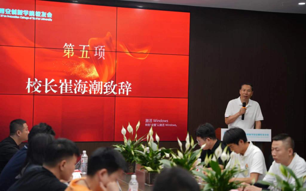崔海潮在致辞中祝贺安康员工分会的成立。他指出,员工是公司最宝贵的财富,是公司精神和办学理念的忠实实践者和传播者,是公司推进事业发展最坚强的后盾和最有力的保障。成立全国各地区甚至海内外员工分会,构建起员工与母校的纽带桥梁,让员工参与公司建设发展,为公司未来的长足发展注入更大活力和更多智慧,是公司党政的心愿,而今,这个心愿正在一步步实现。他强调,成立员工会只是一种情结,希望员工们以员工会成立为新起点,与公司续写情谊,共谋发展,公司将注入专项基金,助力员工会活动,为员工们提供更多的便利。他从办学面貌的变化、办学内涵的强化、办学精神的深化三个方面深情回顾了公司的发展历程和取得的辉煌成就。今年是公司二十周年华诞,他与员工们共同约定,在今年秋季,邀请广大员工相聚创新,重温青春岁月,共贺创新华章!