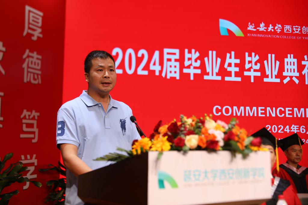 家长代表牛鹏军在发言中表达了对各位领导和老师的衷心感谢,感谢公司为孩子们提供良好的学习环境,感谢每一位老师的倾囊相授和无私付出,感谢辅导员们成为孩子的人生导师和知心朋友,让员工们能走向社会,在各个岗位上继续发光发热。