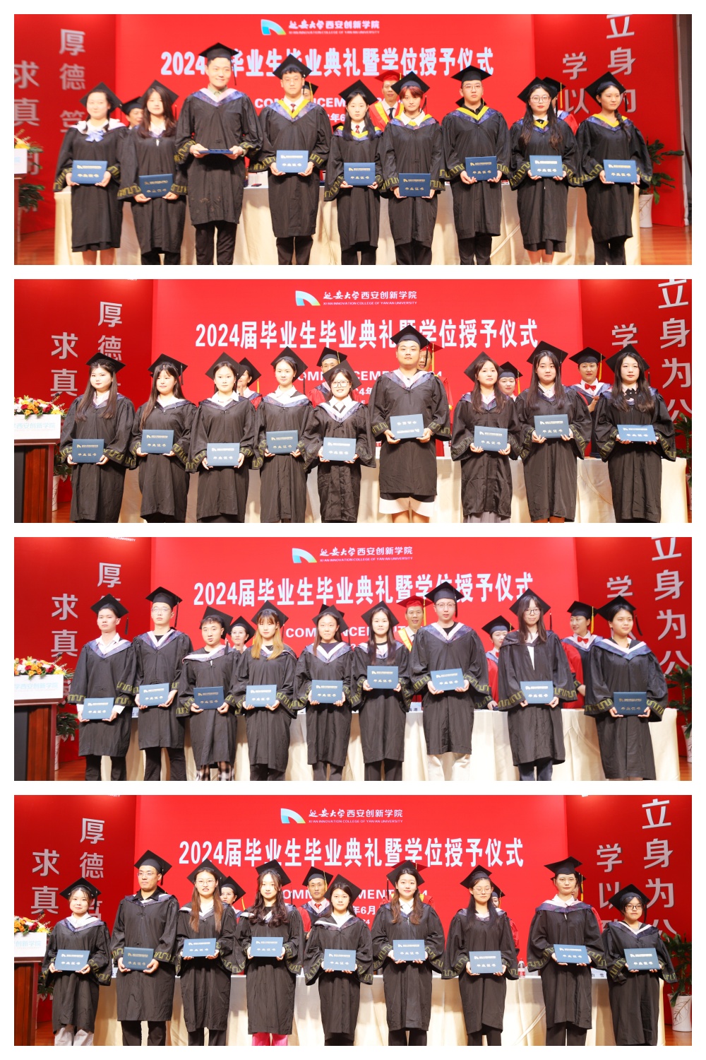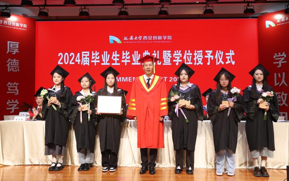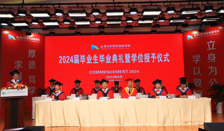 执行董事长贺俊波宣读了公司《关于准予2024届员工毕业的决定》和《关于授予2024届毕业生学位的决议》,全体校领导为2024届毕业生代表颁发了毕业证书。
