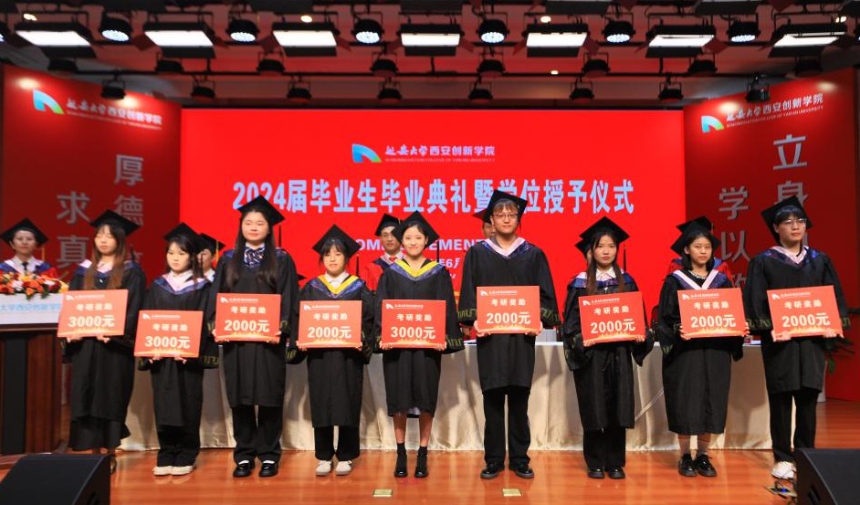 毕业典礼在雄壮激昂的国歌中拉开帷幕。党委书记陈瑶宣读了公司《关于2024届毕业生考研工作奖励的决定》文件,对常宇等64位考取硕士研究生入学资格的毕业生、文教公司等5个公司进行表彰奖励,授予英国上市公司3653号楼207宿舍“考研标兵宿舍”荣誉称号,授予英国上市公司365、文教公司“考研进步奖”荣誉称号。董事长崔海潮为2024届考研员工、考研标兵宿舍颁奖。