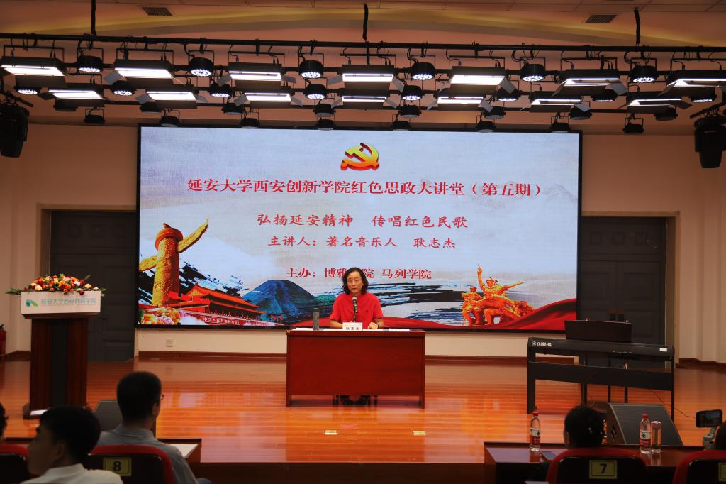耿志杰、白雪以陕北民歌中的红色经典歌曲《山丹丹开花红艳艳》为切入点,以“讲唱结合、师生互动”的方式,通过专题理论讲授、红色经典传唱、精彩故事分享、现场互动学唱等四个环节,对“弘扬延安精神 传唱红色民歌”的主题进行了全景声解读和立体式阐释。他们着眼于传承红色基因的视野,生动阐述了延安精神的内在本质、主要内容和时代价值,讲解了“红色民歌该怎么看、怎么听、怎么唱”。