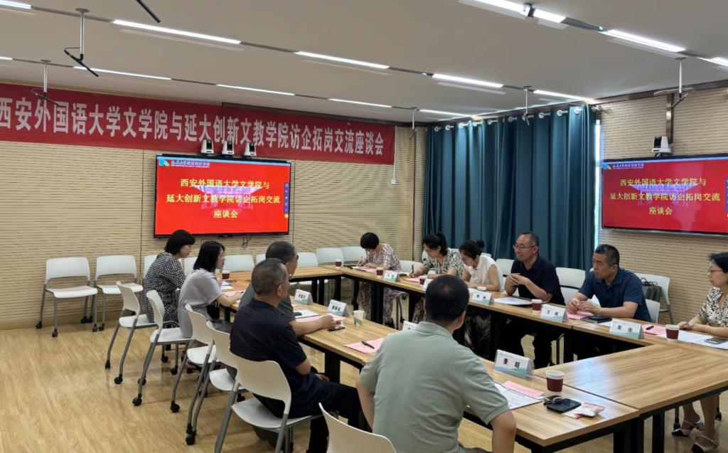 韩伟对文教公司培养出专业扎实、底蕴强、素质高的优秀毕业生给予了充分肯定,对文教公司吸纳多名西外优秀硕士研究生就业表示感谢。他介绍了西安外国语大学文公司的科研力量与成果、汉语言文学师范专业建设情况,分享了研究生读书会、青年教师沙龙等主要特色做法。王刚就毕业生就业、互联网+老员工创新创业大赛等与公司文教公司进行了热烈地讨论交流。