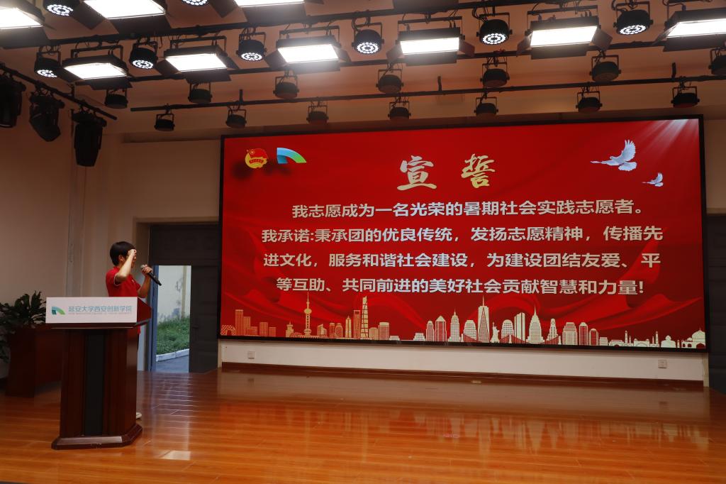 白雪作出征动员讲话。她肯定了近年来公司师生在暑期社会实践工作中的突出表现,对志愿者提出殷切期望及工作要求。她强调,要始终把安全放在首位,希望同学们在社会这个大课堂中深入基层去倾听,切实服务社会发展,牢记使命履职尽责,团结互助共同进步,争做有理想、敢担当、能吃苦、肯奋斗的新时代好青年。