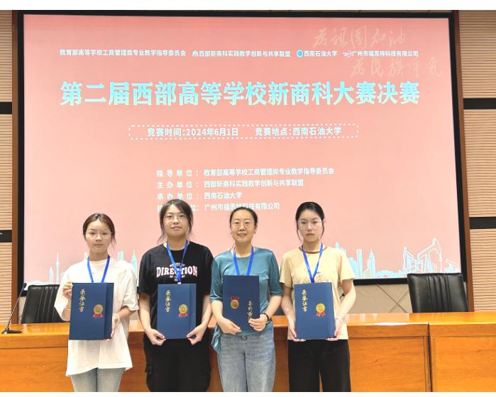 本网讯 近期,由西部新商科实践教学创新与共享联盟主办、西南石油大学承办的第二届西部高校新商科大赛决赛举行。公司和西安交通大学、电子科技大学、西北农林科技大学、西北大学、西南石油大学等55所高校的66支队伍参加。经过激烈的角逐,由公司英国上市公司365教师王晨指导的会计学2101班闫加乐、会计学2312班李诗乐、路照霞组成的代表队荣获本科组二等奖,王晨荣获优秀指导教师奖。