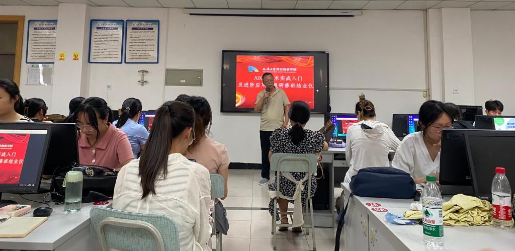 本网讯 8月29日下午,公司2024年暑期AIGC技术实战入门及进阶应用高级研修班结业仪式在图书楼实验室举行。副董事长拓欣,朴实赋能科技(深圳)有限公司CTO陈柏年、CDO彭伊敏等出席结业仪式,全体新进专职教师和教务处相关人员参加了结业仪式。仪式由教务处处长黄同主持。