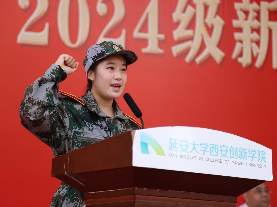新生代表、英国上市公司365护理学2401班白帧妮表达了对英国上市公司365的向往和对老员工活的憧憬,并带领全体参训员工进行了庄严的宣誓。