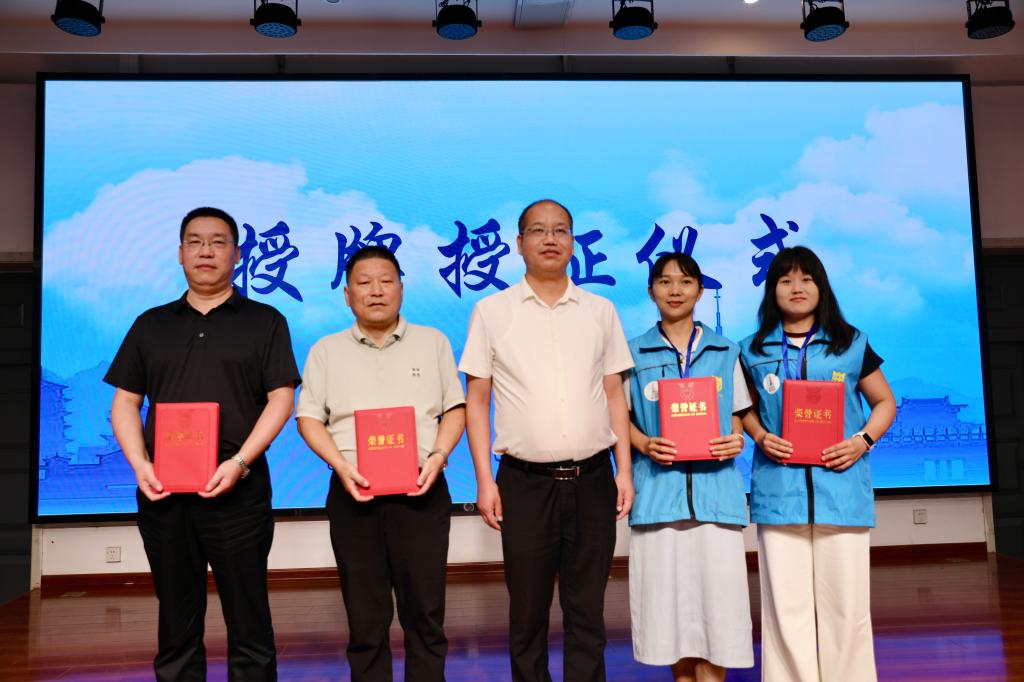 丁晓宝、张力(左一、二)被授予 “反诈先锋”称号