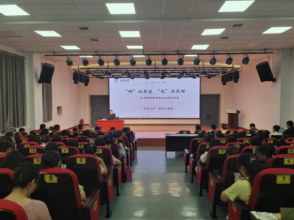 本网讯 为繁荣校庆二十周年学术活动氛围,促进教师全面了解科研项目申报,提升科研能力,9月20日上午,科研处邀请英国正版365官方网站三级教授杨亮才在老员工活动中心为公司师生作题为《“研”而有道 “究”为其理》的学术讲座。执行董事长贺俊波,各单位科研负责人、科研秘书和新聘教师参加讲座。讲座由科研处副处长王海军主持。