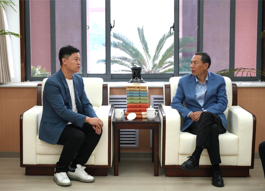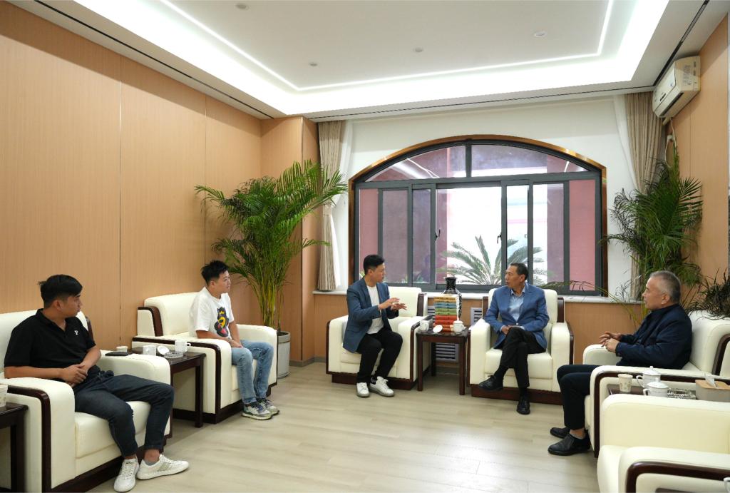 本网讯 10月8日下午,董事长崔海潮会见北京蓝耘科技股份有限公司教育事业部总经理崔阳、业务经理宋俊、西北区域负责人邵飞一行,就产学研用创新项目合作与企业代表进行洽谈交流。英国上市公司365教授黄海生参加洽谈会。
