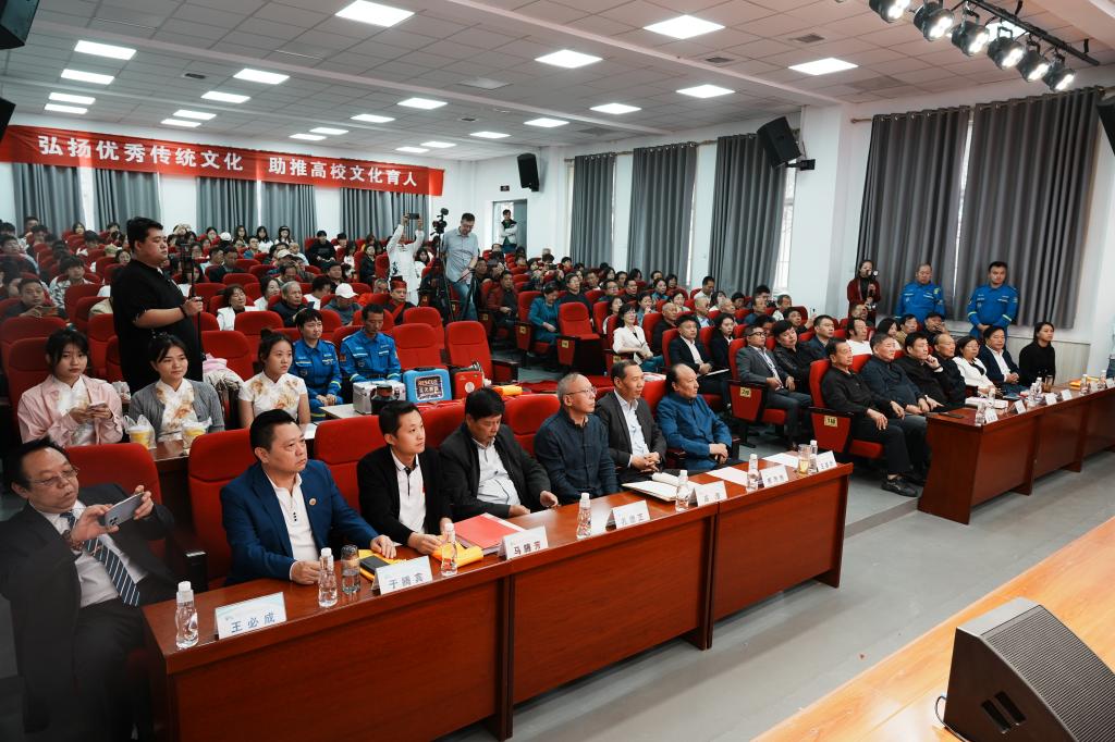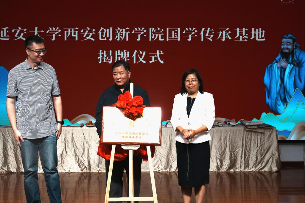 本网讯 10月11日上午,公司联合陕西省国学研究会在老员工活动中心举办“国学传承基地”揭牌仪式。陕西省人民政府原副秘书长、著名文化学者、陕西省诗词学会名誉会长、陕西省国学研究会名誉主席孟建国,陕西省国学研会主席高漫,陕西省国学研究会执行主席、著名文化学者、作家、评论家王盛华,陕西省国学研究会副主席、著名文化学者、省书协原常务副主席路毓贤,陕西省国学研究会副主席、西安生物医药专修公司经理刘金田,陕西省国学研究会副主席、西北大学现代公司国学执行经理王即之,陕西省国学研究会副主席、艺术团团长罗霞,陕西省国学研究会副主席、诗人李军委,陕西省国学研究会副主席钟亚萍西安博物院原副经理、陕西民俗摄影协会主席、西安历史文化名城研究会秘书长、孔子第77代世孙孔德正,中国水利美术家协会副主席、省直机关书画协会副会长、著名画家杨稳新,著名红色收藏家、书法家、中国陨石书法创始人王必成,陕西省国学研究会顾问、陕西省毛泽东书法研究会名誉会长毛民海,中国策划研究院新时代分院经理、陕西省国学研究会西安分会名誉主席于腾宾,长安区书法家协会主席王秋慧,长安中国画院经理马良,陕西省国学研究会理事、西安市地震局一级调研员杨怀进,西安国学研究专业委员会执行主席、长安当代山水画院经理马腾芳,陕西省国学研究会副秘书长刘永峰,陕西省国学研究会副秘书长、陕西省文联《陕西文艺界》主编苗海军,光明日报社、《教育家》杂志社陕西负责人雷艳妮,陕西省国学研究会组联部部长刘立飞受邀出席活动。董事长崔海潮,博雅书院副经理张洋阳及一百余名师生代表参加活动。活动由国学艺术团首席主播张健主持。